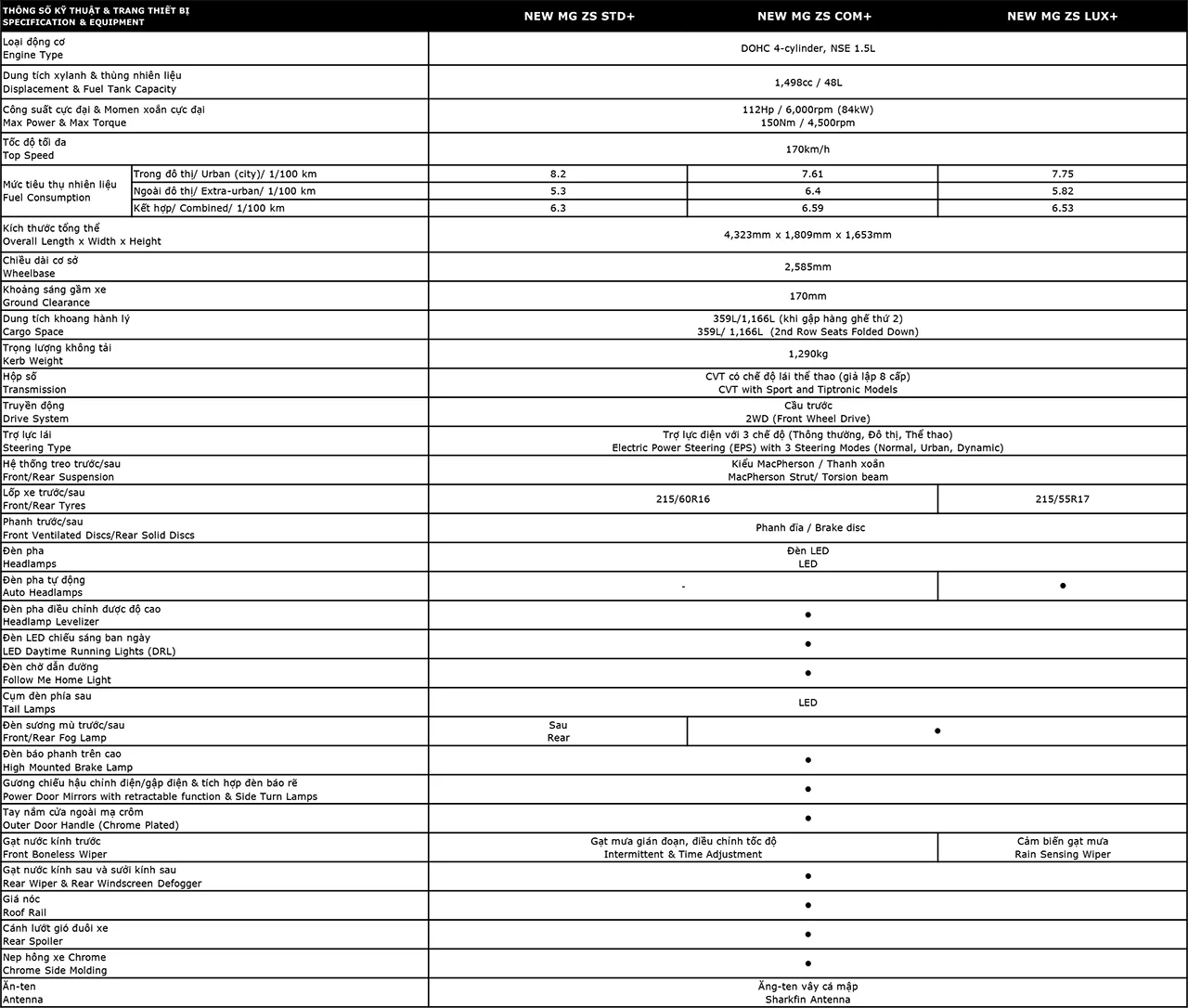 MG ZS mới có chiều rộng tốt nhất phân khúc (1,809mm) cùng chiều dài và chiều cao lần lượt 4,323mm và 1,653mm, được định danh là một chiếc xe có kích cỡ tốt trong phân khúc B-SUV